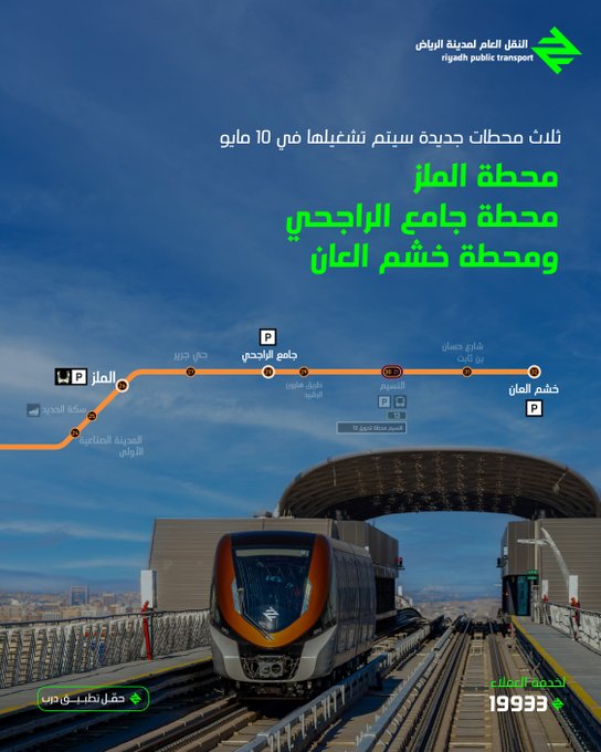 وقال حساب النقل العام مخاطباً أهل الرياض : يا أهل الرياض، استعدوا ! 3 محطات جديدة بتنور المسار البرتقالي: الملز، جامع الراجحي، وخشم العان – ابتداءً من 10 مايو! احجز رحلتك الآن عبر تطبيق درب .