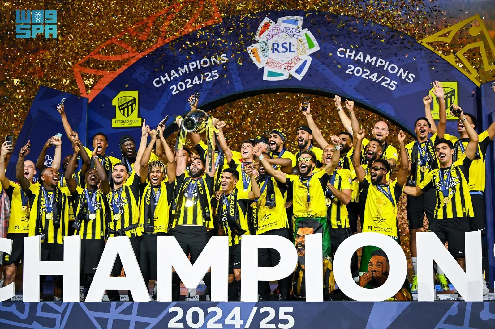 توّج صاحب السمو الملكي الأمير عبدالعزيز بن تركي بن فيصل, وزير الرياضة رئيس اللجنة الأولمبية والبارالمبية السعودية، فريق الاتحاد بلقب الدوري السعودي للمحترفين “روشن السعودي” 2024 – 2025م، بعد فوزه على ضيفه فريق ضمك بهدف دون رد، في المواجهة التي جمعتهما مساء الاثنين على ملعب مدينة الملك عبدالله الرياضية بجدة.