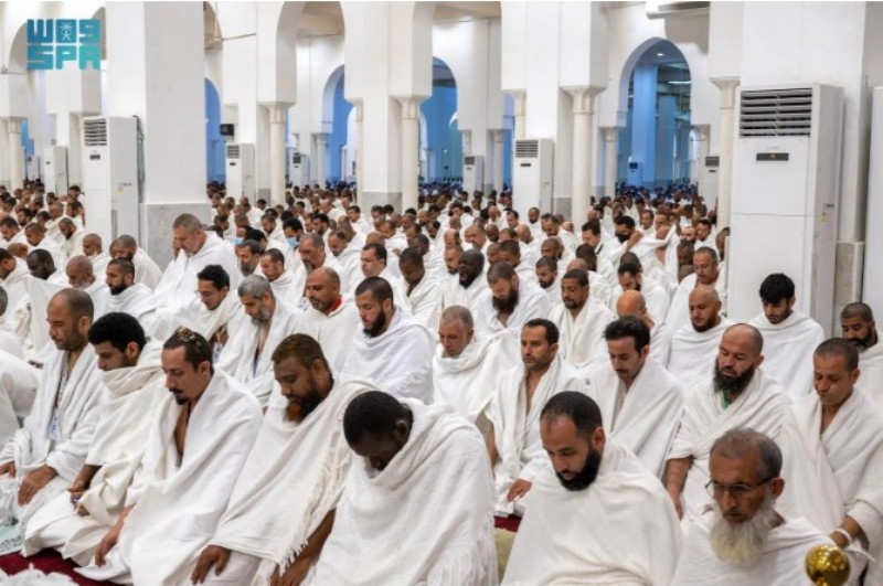 إثر ذلك أدى حجاج بيت الله الحرام صلاتيّ الظهر والعصر جمعًا وقصرًا؛ اقتداءً بسنة النبي -صلى الله عليه وسلم-.