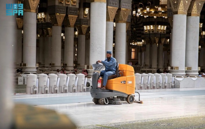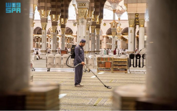وتواصل الفرق الميدانية المتخصصة أعمالها باستخدام أحدث الآليات والمواد المعتمدة، تحقيقًا لأعلى معايير العناية، وبما يعكس مكانة المسجد النبوي قبلةً روحيةً للمسلمين من مختلف أنحاء العالم.