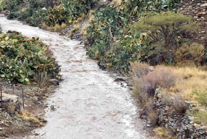 وأظهرت المشاهد جريان المياه واكتساء الأرض بالبرد، لترسم على وجوه المصطافين ابتسامات الفرح، وتبعث الحياة في مرتفعاتها ووديانها التي غمرها الثلج والماء معًا.