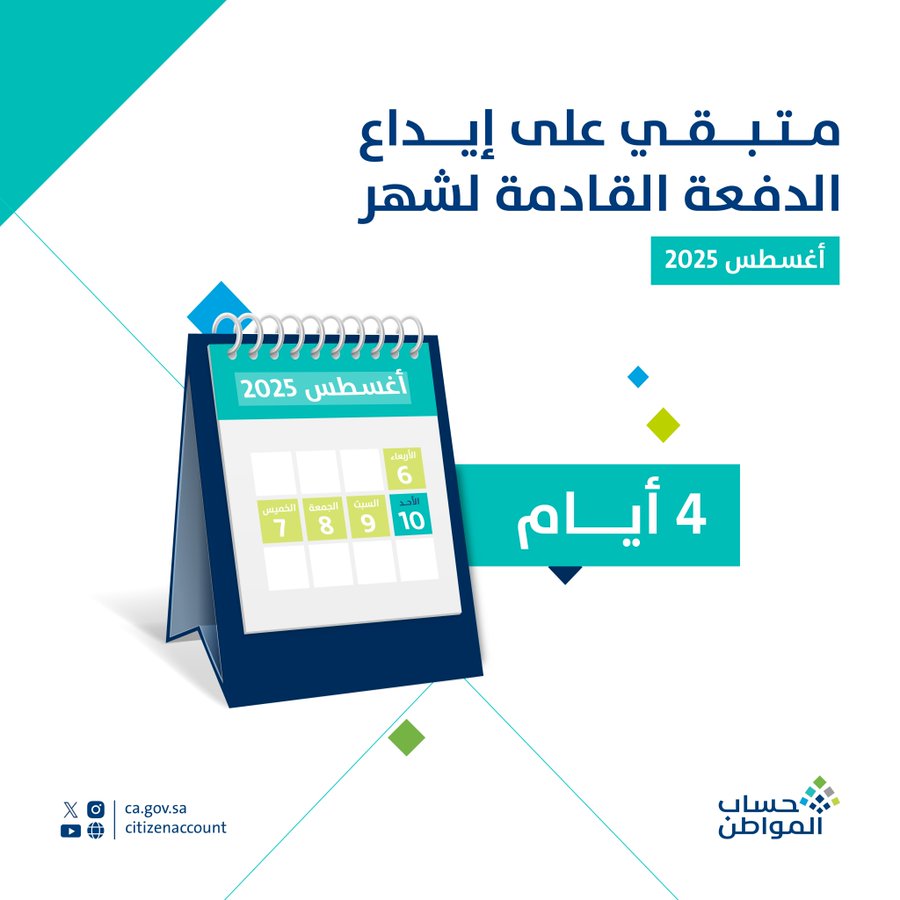 ودعا «حساب المواطن» عبر حسابه في منصة X جميع المستفيدين إلى متابعة حساباتهم البنكية خلال الفترة القادمة، للتأكد من استلام الدعم في الموعد المحدد، مشيراً إلى أهمية الالتزام بتحديث البيانات بشكل مستمر لضمان استمرارية الاستحقاق وعدم تأثر الأهلية.