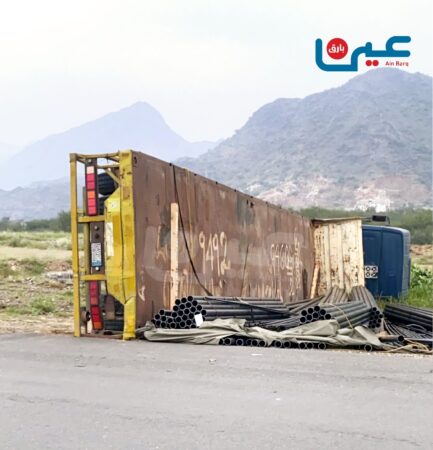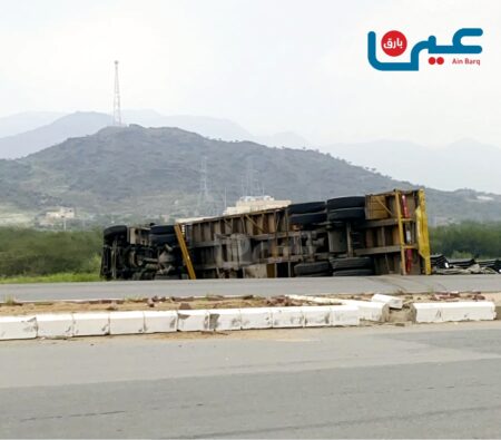 وبحسب شهود عيان ، فأن الشاحنة كانت متجهة من الشمال للجنوب وتحديدا مقابل محطة وقود ساسكو ليفقد قائدها السيطرة عليها مما أدى لا نحرفها عن مسارها للشارع المقابل وانقلابها ، واستطاع السائق الخروج منها سالما .