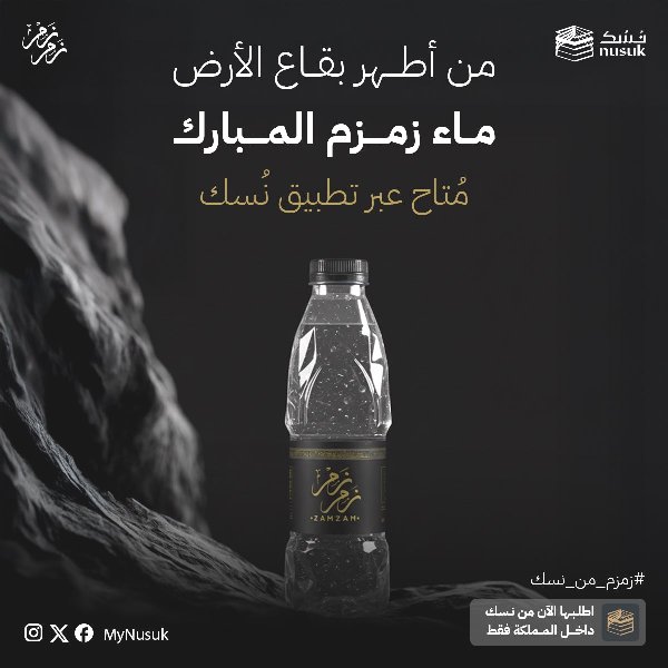ويأتي إطلاق هذه الخدمة ضمن جهود “نسك” لتوسيع خدماتها الرقمية الموجهة للمسلمين داخل المملكة وخارجها، وتيسير الوصول إلى التجارب الدينية والروحانية الموثوقة، عبر حلول تقنية مبتكرة تسهّل الحصول على ماء زمزم المبارك بطريقة آمنة وميسّرة.