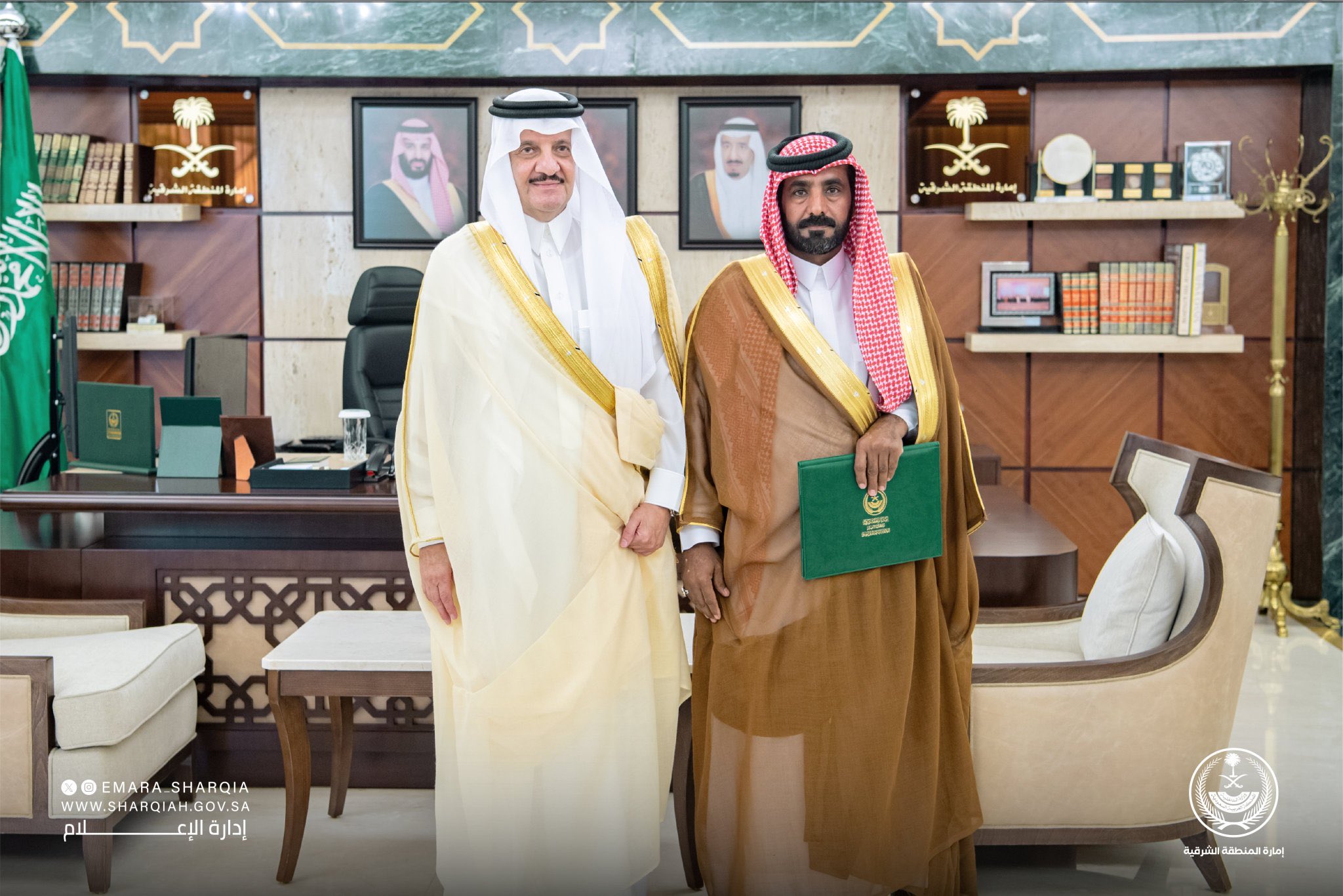 كرَّم صاحب السمو الملكي الأمير سعود بن نايف بن عبدالعزيز، أمير المنطقة الشرقية، في مكتبه اليوم، بحضور مدير الدفاع المدني اللواء ماجد الموزان، المواطن جابر بن سعيد آل سالم، والمواطن ممدوح بن عبدالله الخلف، نظير تصرفهما النبيل في إخماد حريق نشب بأحد المحال التجارية بمحافظة الجبيل.