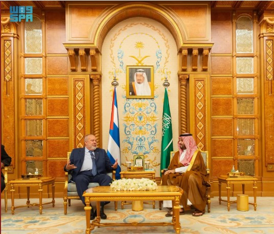 وجرى خلال اللقاء، استعراض أوجه علاقات التعاون المشترك في المجالات كافة، وفرص تطويرها – حضر اللقاء، صاحب السمو الأمير فيصل بن فرحان بن عبدالله وزير الخارجية، ومعالي وزير السياحة الأستاذ أحمد بن عقيل الخطيب، ومعالي سكرتير سمو ولي العهد الدكتور بندر بن عبيد الرشيد، وسفير خادم الحرمين الشريفين لدى جمهورية كوبا الدكتور وليد الحمودي.