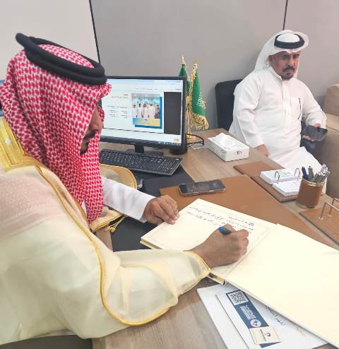 وكان في استقبال المحافظ لدى وصوله رئيس الجمعية الأستاذ عبدالرحمن عاطف ونائبه الأستاذ علي عبده البارقي  وعدد من أعضاء الجمعية العمومية  .