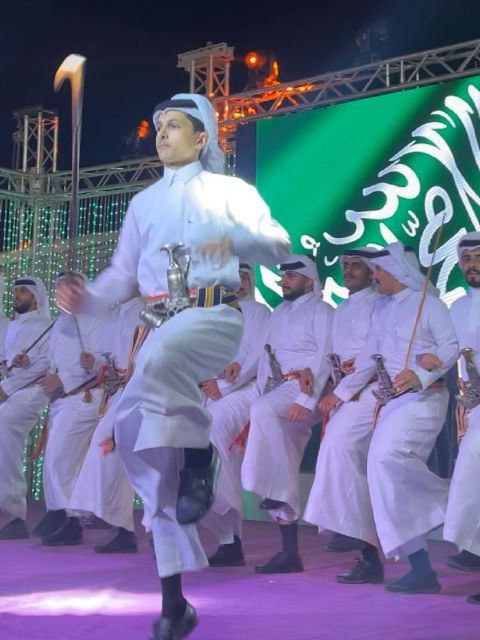 وأختتم الحفل بأوبريت بعنوان “عيدي يا ديار السعودية” من كلمات وآداء الشاعرين سعد هادي الألمعي و عبدالله عامر القيسي بمشاركة فرقة رجال ألمع للثقافة والتراث ، تضمن عدة ألوان شعبية ونال استحسان الأهالي والحضور .