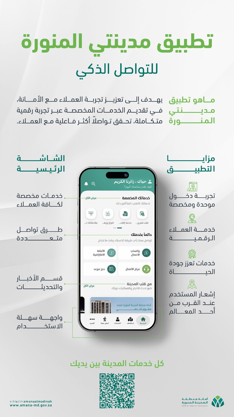 وأكدت أمانة المدينة المنوّرة أن إطلاق التطبيق يأتي ضمن جهودها المتواصلة لتسهيل وصول السكان والزوار إلى الخدمات البلدية، وتحقيق تجربة رقمية متكاملة تعكس مسار التحول الذكي الذي تشهده المدينة المنوّرة.