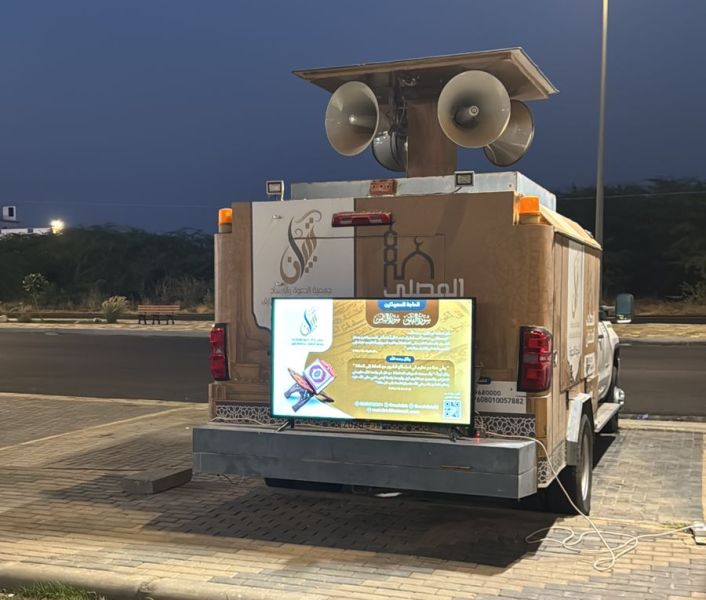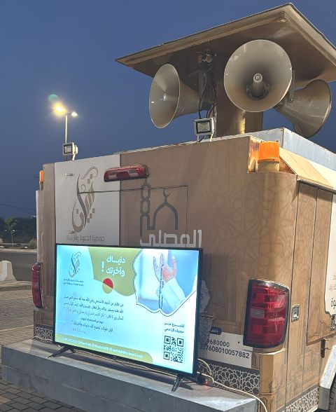 وأحتضن ممشى النخيل الواقع شمال محافظة بارق فعاليات المصلى المتنقل والتي شملت كلمات دعوية وتوجيهيه وتربويه وعرض الأحاديث النبوية والآداب الشرعية على الشاشة الدعوية طيلة أيام الإجازة .