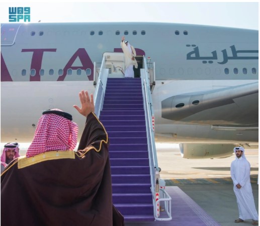 غادر الرياض اليوم، صاحب السمو الشيخ تميم بن حمد آل ثاني أمير دولة قطر – وكان في وداع سموه في الصالة الملكية بمطار الملك خالد الدولي، صاحب السمو الملكي الأمير محمد بن سلمان بن عبدالعزيز آل سعود ولي العهد رئيس مجلس الوزراء.