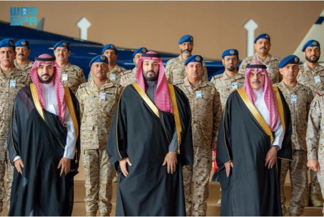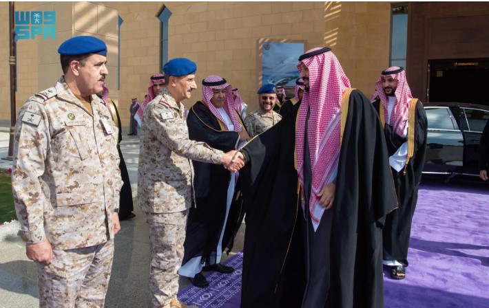 وكان في استقبال سمو ولي العهد لدى وصوله مقر القاعدة، صاحب السمو الملكي الأمير خالد بن سلمان بن عبدالعزيز وزير الدفاع، وصاحب السمو الأمير عبدالرحمن بن محمد بن عياف نائب وزير الدفاع، ومعالي رئيس هيئة الأركان العامة الفريق الأول الركن فياض بن حامد الرويلي، ومعالي مساعد وزير الدفاع للشؤون التنفيذية الدكتور خالد البياري، وصاحب السمو الملكي الفريق الركن تركي بن بندر بن عبدالعزيز قائد القوات الجوية الملكية السعودية.