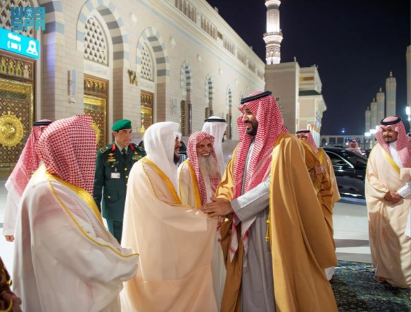 سمو ولي العهد يزور المسجد النبوي ويصلي بالروضة الشريفة