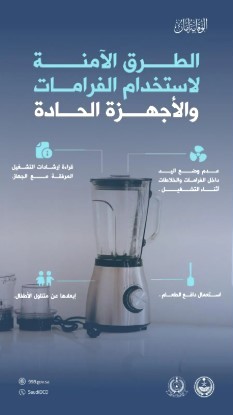 وأوضح الدفاع المدني الطرق الآمنة لاستخدام الفرّامات والخلاطات، بتجنب إدخال اليد أثناء التشغيل، وعدم ترك الأجهزة في متناول الأطفال، واستعمال أداة دافع الطعام.