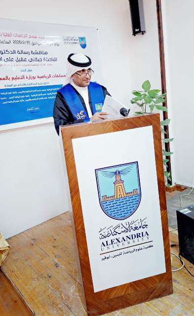 ويعد هذا التتويج إضافة نوعية لمسيرته العلمية والمهنية في مجال الإدارة الرياضية لما تمثله جامعة الإسكندرية من مكانة اكاديمية عريقة على مستوى الوطن العربي ولما يحمله تخصص الإدارة الرياضية من أهمية في تطوير المنظومة الرياضية ورفع كفاءة العمل المؤسسي .