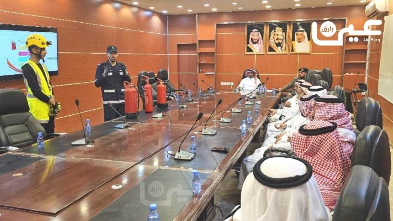 ترأس وكيل محافظة بارق إبراهيم بن عامر آل منشط صباح اليوم الأربعاء 20 ربيع الثاني 1446هـ ورشة عمل بعنوان التصرف الصحيح عند حدوث حريق بحضور نائب إدارة الدفاع المدني بالمحافظة الرائد صالح البشري وعدد من مشائخ القبائل والأعيان .