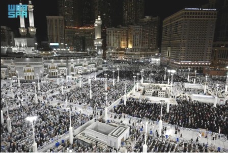 أدى المصلون بالمسجد الحرام اليوم، صلاتي التراويح والتهجد في أول ليلة من العشر الأواخر لشهر رمضان لهذا العام.