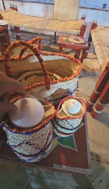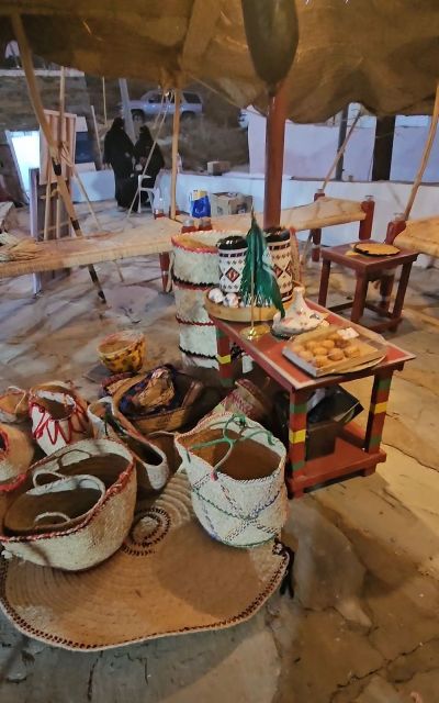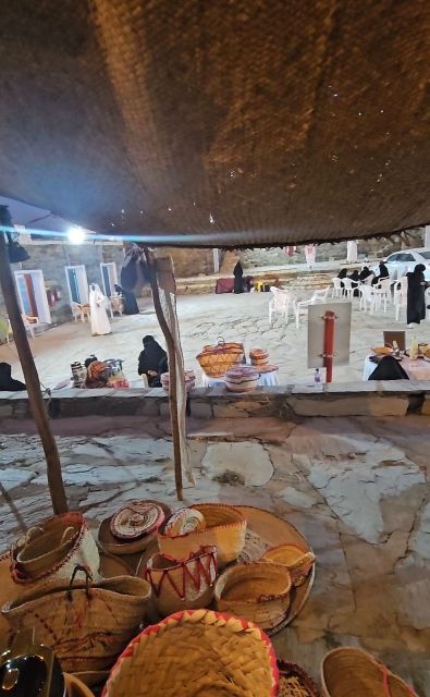واضافت ان المنتجات الحرفية تنوعت ما بين مشغولات يدوية قديمة أبرزها بيت الوضين (بيت الظعن) المصنوع من شجر الدوم وبعض محتوياته من المادة نفسها، التي تعد من التراث المادي الذي لم يعد موجوداً،
