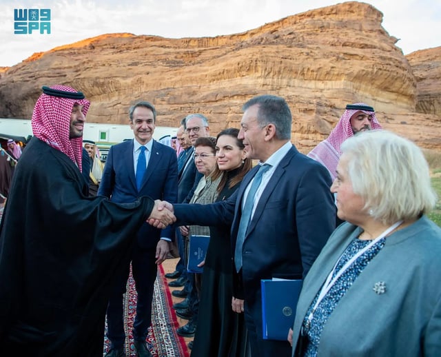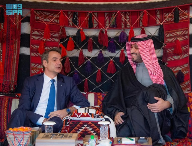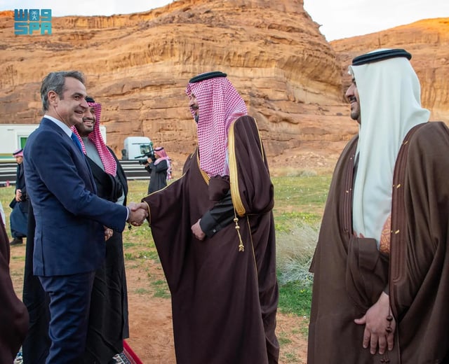 استقبل صاحب السمو الملكي الأمير محمد بن سلمان بن عبدالعزيز آل سعود، ولي العهد رئيس مجلس الوزراء، في المخيم الشتوي بالعلا اليوم، السيد كيرياكوس ميتسوتاكيس، رئيس الوزراء في الجمهورية الهيلينية “اليونان”.