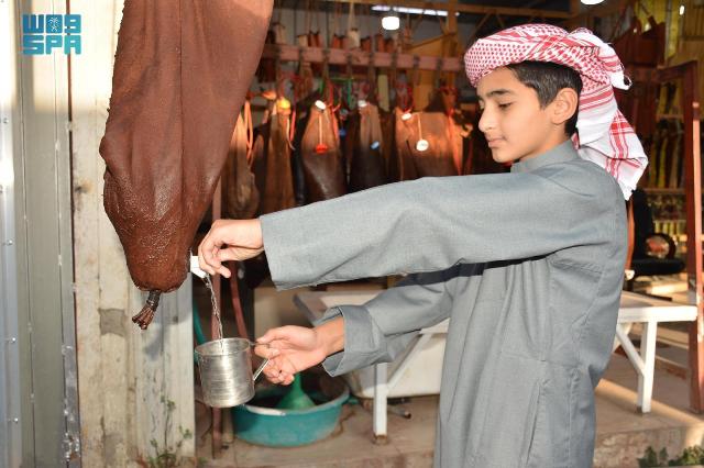 “المِيزَبْ” و “المشرابْ”.. يبرزان بين الصناعات الجلدية القديمة بنجران