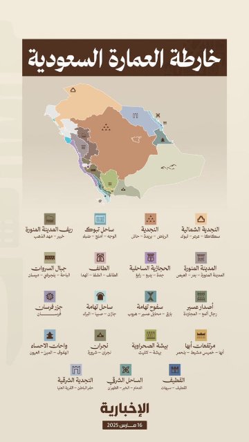 أطلق صاحب السمو الملكي الأمير محمد بن سلمان بن عبدالعزيز آل سعود، ولي العهد رئيس مجلس الوزراء -حفظه الله-، خريطة العِمَارَة السعودية، التي تشمل 19 طرازًا معماريًا مستوحى من الخصائص الجغرافية والثقافية للمملكة، وذلك في إطار جهود سموه، للاحتفاء بالإرث العمراني وتعزيز جودة الحياة وتطوير المشهد الحضري في المدن السعودية، بما يتماشى مع مستهدفات رؤية المملكة 2030.