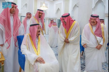 وعقب الصلاة، تلقى خادم الحرمين الشريفين ـ رعاه الله ـ، التهاني والتبريكات من أصحاب السمو والمعالي بهذه المناسبة السعيدة.