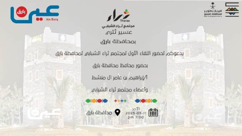 برعاية محافظ بارق الأستاذ إبراهيم بن عامر آل منشط يقيم مجتمع ثراء الشبابي ( عسير تثري ) بمحافظة بارق اللقاء