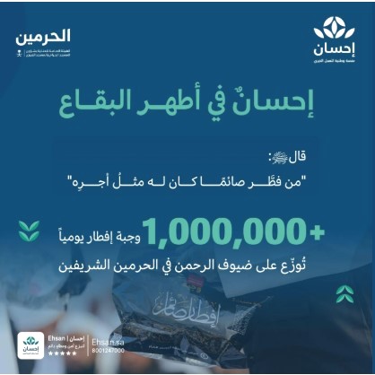 أثمرت عطاءات المحسنين عبر المنصة الوطنية للعمل الخيري “إحسان” بالتعاون مع الهيئة العامة للعناية بشؤون المسجد الحرام والمسجد النبوي، عن