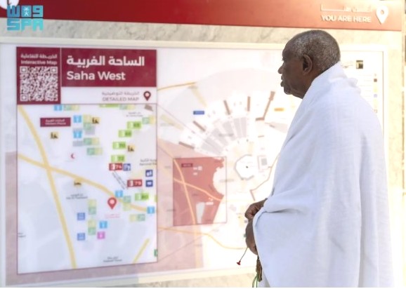 طوّرت الهيئة العامة للعناية بشؤون المسجد الحرام والمسجد النبوي لوحات “أنت هنا” في المسجد الحرام، وهي لوحات إرشادية ذكية موزعة