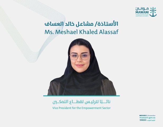 أعلنت #موانئ عن تعيين الأستاذة مشاعل خالد العساف نائبًا للرئيس لقطاع التمكين، وتعد من الكفاءات الوطنية في مجالي ريادة الأعمال