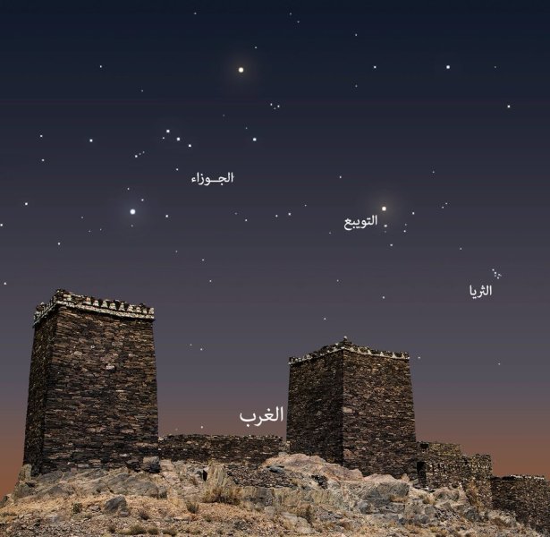 تشهد سماء المملكة, فجر غد الاثنين، ظاهرة فلكية استثنائية تتمثل في التقاء هلال القمر المتناقص بعنقود النجوم الشهير الثريا المعروف
