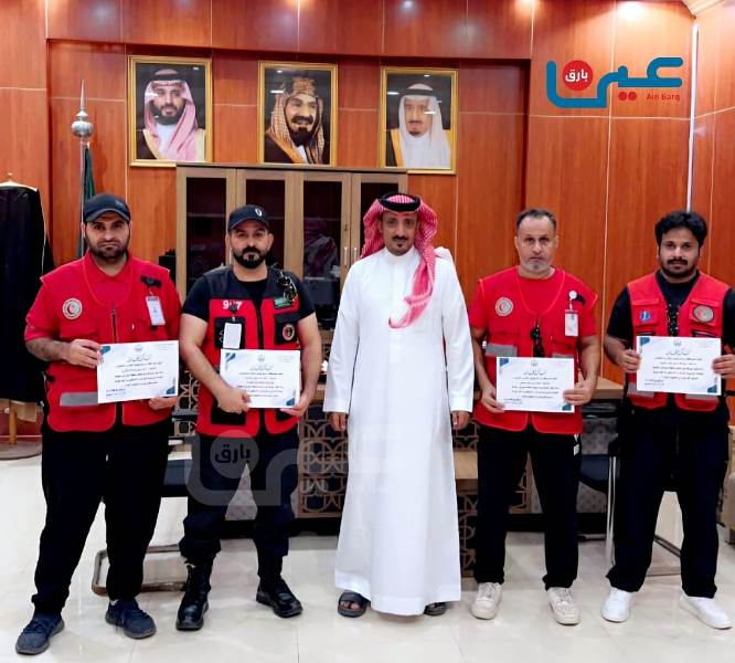 كرم وكيل محافظ بارق الأستاذ إبراهيم بن عامر آل منشط منسوبي مركز إسعاف بارق في مقر ديوان المحافظة صباح الخميس