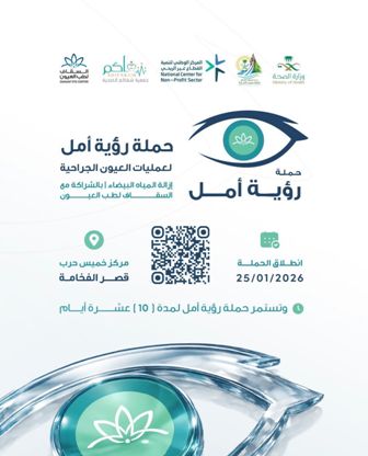 تنطلق عصر اليوم الأحد 6 شعبان 1447هـ بقصر الفخامة بمركز خميس حرب شرقي محافظة القنفذة حملة رؤية أمل لعمليات العيون