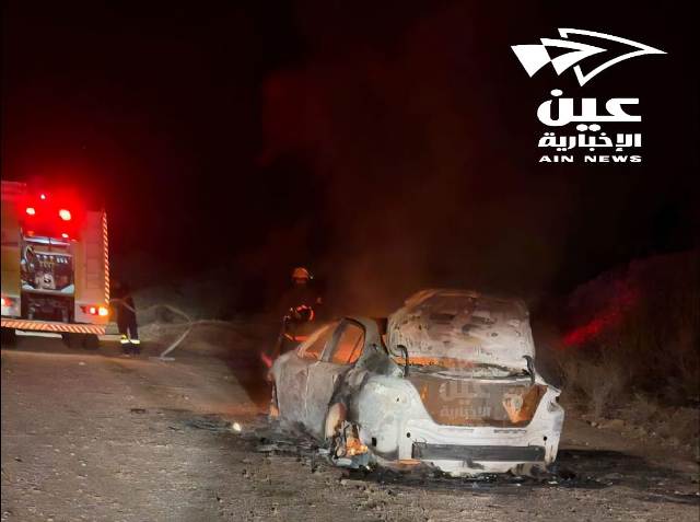 نجا مواطن من حادث احتراق مركبته اثناء سيره على الطريق الرابط بين مركز أحد ثربان ومحافظة المجاردة شمال منطقة عسير