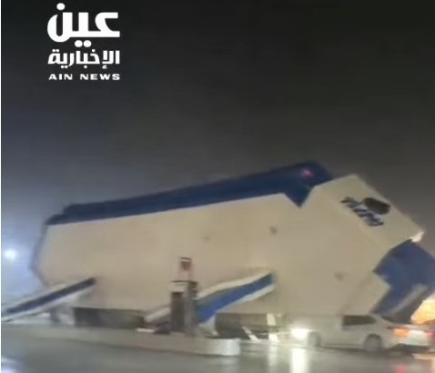 أظهر فيديو متداول لحظة سقوط ( مظلة ) إحدى محطات الوقود الواقعة بمركز القوز التابع لمحافظة القنفذة غرب منطقة مكة