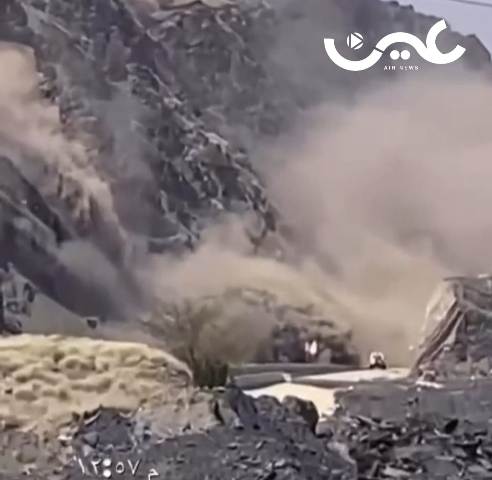 أظهر مقطع فيديو متداول لحظة حدوث انهيارات صخرية على الطريق الرابط بين مركز بحر أبو سكينةأو ما يعرف بـ ”